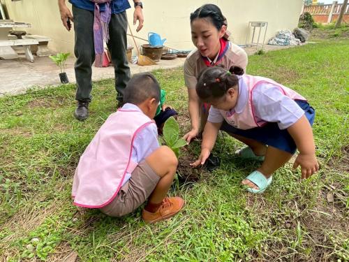 🤝🏻พช.หันคาบูรณาการกิจกรรมปลูกผักสวนครัวเพื่อสร้างความมั่นคงทางอาหารร่วมกับคณะครูและนักเรียน โรงเรียนวัดวงเดือน